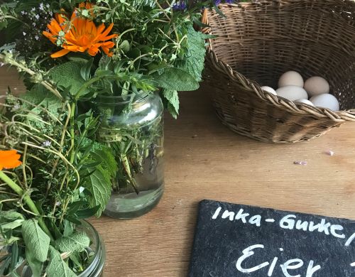 Hier können nicht nur frische und verarbeitete Produkte aus unseren Permakulturgärten erworben werden – bei feinen Getränken und Speisen lässt sich auch die Seele des Auenhofs geniessen.